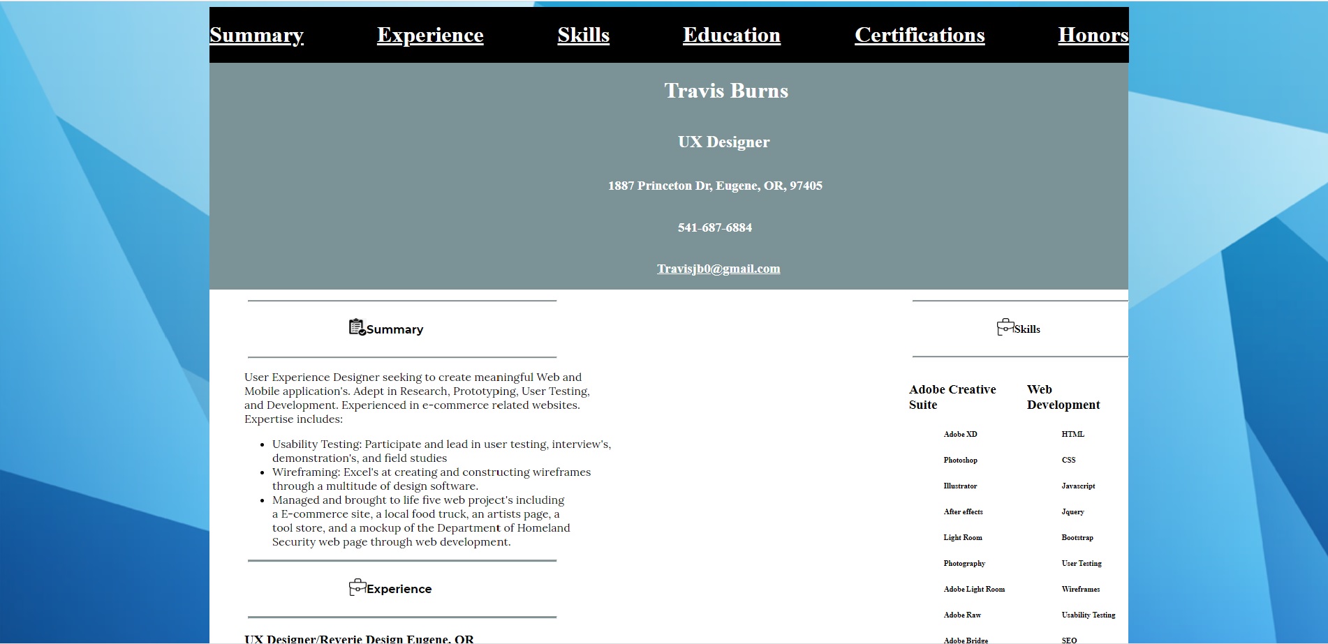 I am Travis, I am a web developer in addition to UX designer. In the near future I want to become employed full time and eventually create my own web design agency. I like to travel, take phtography and have a gigantic list of entreprenuer like ideas.